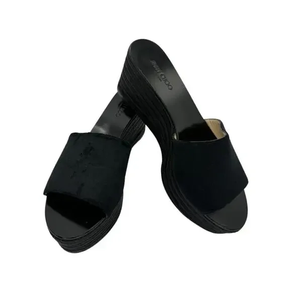 Jimmy Choo Deedee Liquid Velvet Jute Wedge Sandals, 3" rope covered cork wedge, leather lined. 39.5, Made in Spain. Condition - Excellent/Brand New.