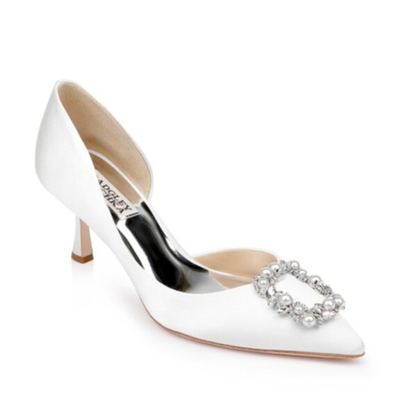 Bagdley Mischka crystal buckl, size 8.5, White satin shoe.New with box.Never worn.