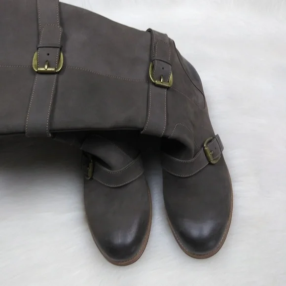 From sundance catalog brand is called Fortress of inca. Stunning Charcoal Handcrafted nubuck leather belted boots. Side zip. These are perfect for fall and winter with all your...