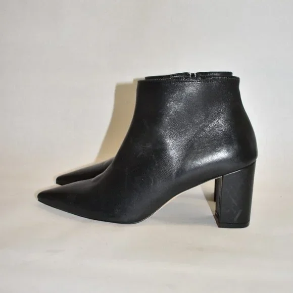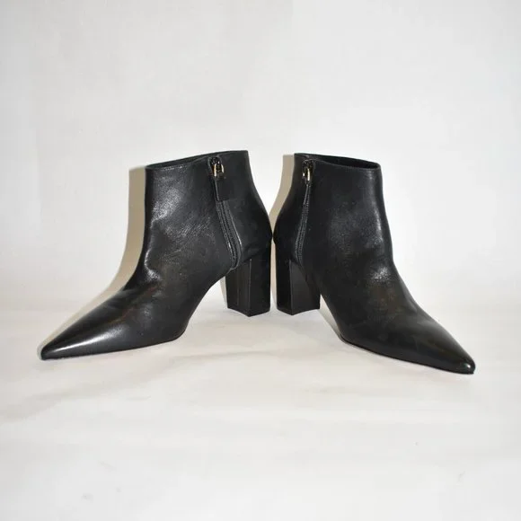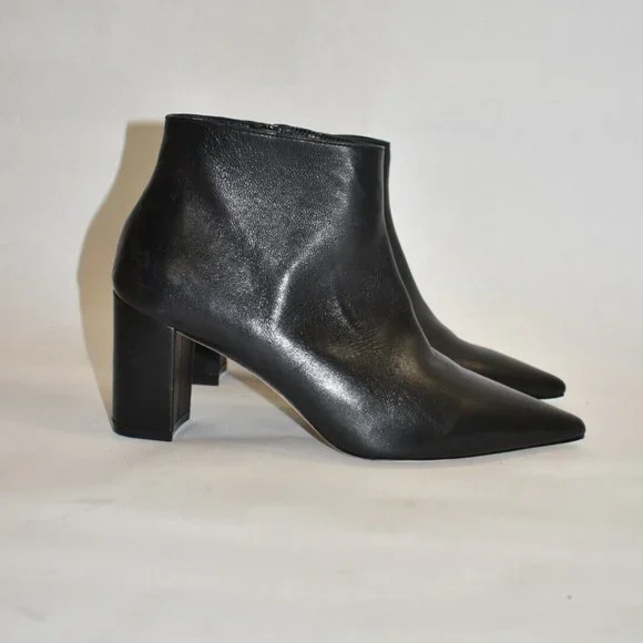 FLOOR MODEL AND TRIED ONEXCELLENT LIKE NEW- PLEASE SEE PICTURESA short bootie with an ankle zip feature and a block heel to accent a pointed toe. Comfortable for this type of...