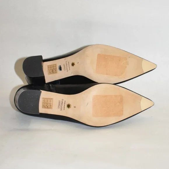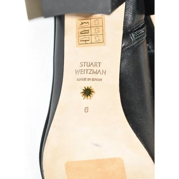 $650 STUART WEITZMAN 75 ZIP BOOTIE POINTY BLOCK BLACK LEATHER 6 (PA14)