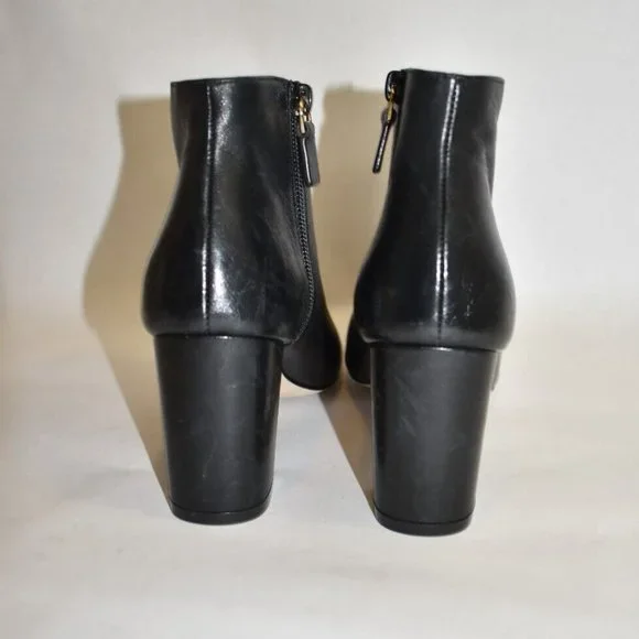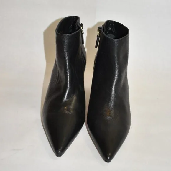 FLOOR MODEL AND TRIED ONEXCELLENT LIKE NEW- PLEASE SEE PICTURESA short bootie with an ankle zip feature and a block heel to accent a pointed toe. Comfortable for this type of shoe, you can wear it with tight fitting pants or a cropped flare. The block heel makes it easier to stand for long periods of time or walk around the city.Pointed toeFunctional inside zipVersatile, wear-everywhere designDecorative tie at back3" wrapped block heelLeather upper and lining, rubber soleMade in SpainNO SHOE BOX OR BAG