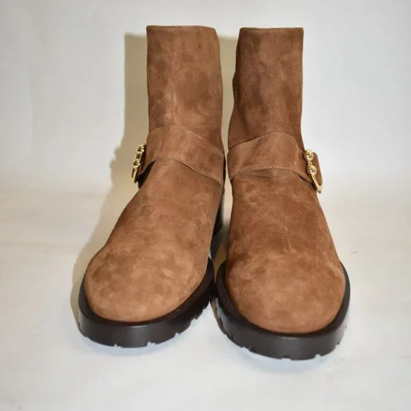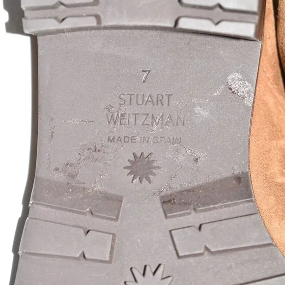 $650 Stuart Weitzman LUXERING 5050 BOOT SUEDE COFFEE LUG SOLE GOLD 7 (2) (PA11)