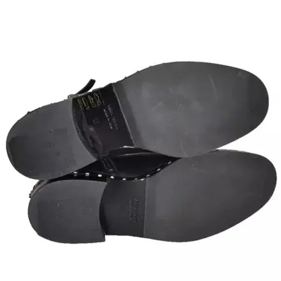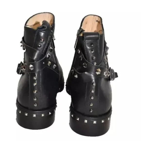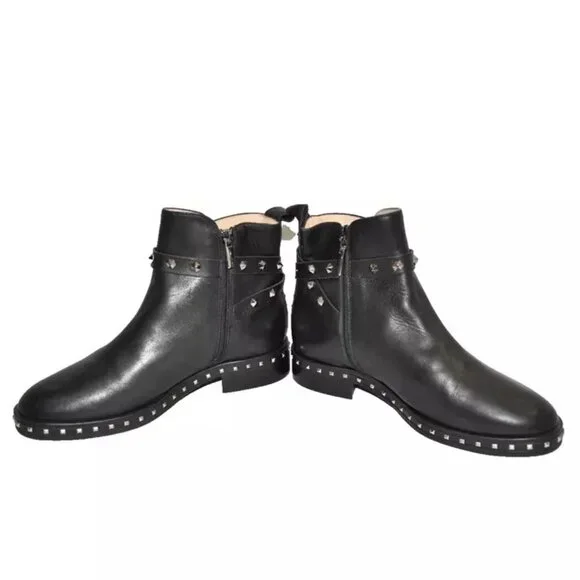 $650 RON WHITE BRAILYNN STUDDED SILVER LEATHER ANKLE BOOT BLACK 37 (MF21)
