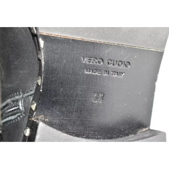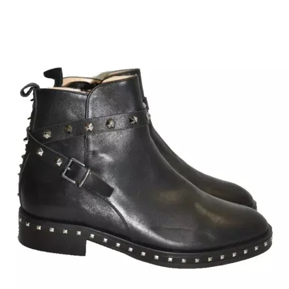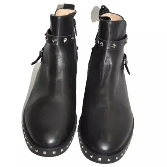 FLOOR MODEL AND TREID ON - EXCELLENTLIKE NEW CONDITION- PLEASE SEE PICTURES!!This waterproof ankle boot can be dressed up or down. A smooth polished leather boot is given a modest edge with stud details. Sizing: Order 1/2 size down, Reference size chart for European conversion.- Soft calf leather with geometric studs - Inside zipper - Leather with half rubber outsole - Approx. 5" shaft height, 10" opening circumference - Approx. 1" heel - Made in ItalyLeather upper, leather and rubber soleNO SHOE BOX OR BAG Made in Canada.NO SHOE BOX OR BAG