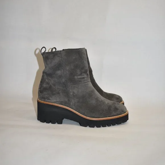 FLOOR MODEL AND TRIEDO ON EXCELLENT CONDITION- PLEASE SEE PICTURE5 AU =7.5 USDETAILS & CAREContrast trim highlights the lug sole of this effortlessly chic bootie shaped from soft suede.2 1/4" heel; 1" platform5" shaftSide zip closureLeather upper and lining/rubber soleMade in ItalyWomen´s ShoesNO SHOE BOX OR BAG