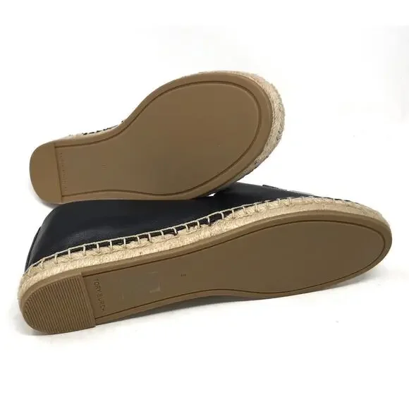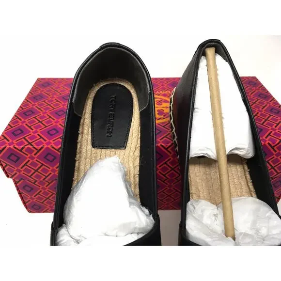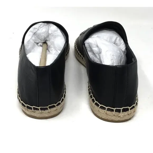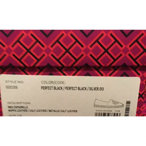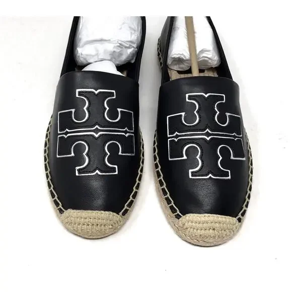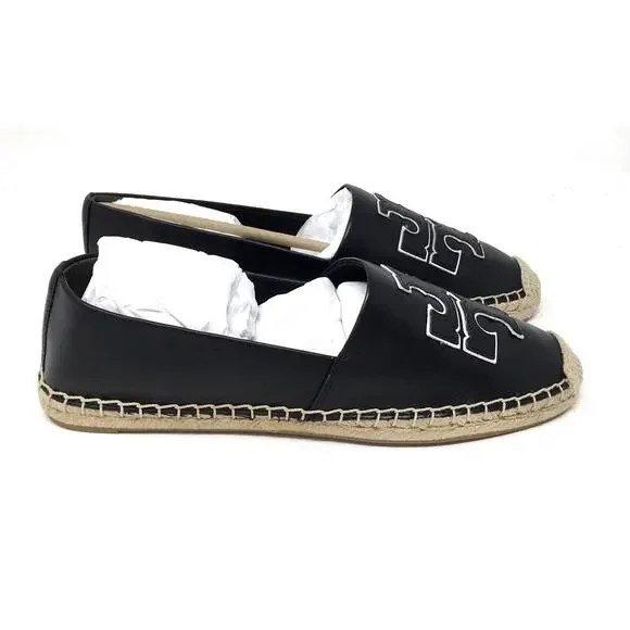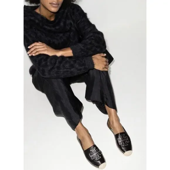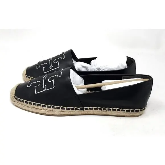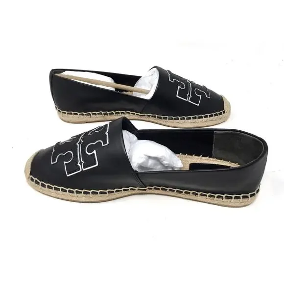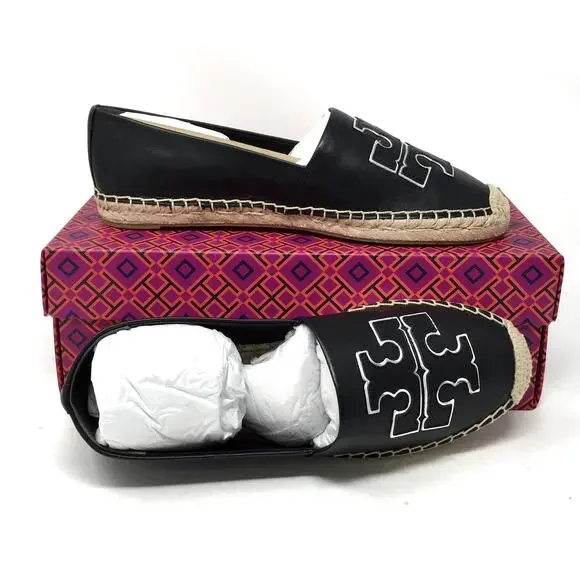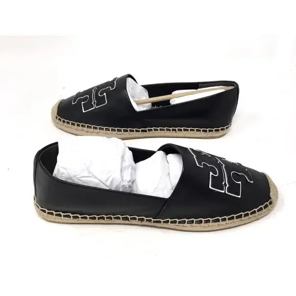 NIB Tory Burch Ines Espadrille Leather Flat Black Silver Shoes, US 8The perfect shoe for everything! The Ines features a raised Double T edged in metallic leather. color:...