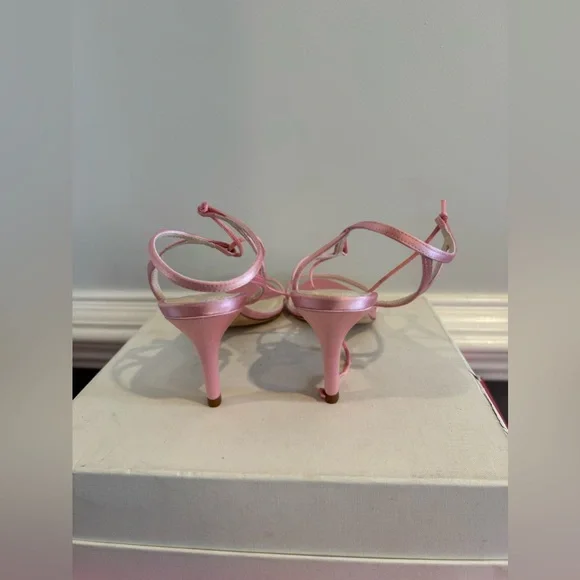 Handcrafted from biologic silk, apple skin and sugarcane molasses, Clover reimagines the classic luxury heeled sandal. Clover is a pink rounded-toed style with an adjustable, smooth ankle strap and a 75MM heel. Handmade in Italy.Heel height: 75MM or 3"Upper: Biologic silkLining: Upcycled apple skinInsole: Upcycled apple skinTie: Bio-based sugarcane molassesOutsole: Vegetable tanned leatherMidsole: Recycled cardboardSizing: Clover typically runs true to size. Straps are adjustable.All of my items are 100%guaranteed authentic .please read all the details and check the pictures before you buy the itemthese items are either store display , store return, some are brand new or have been used for a model show,the items have a black line or red lineon label to prevent a return to the store for original pricePlease ask me any question you have , thank you