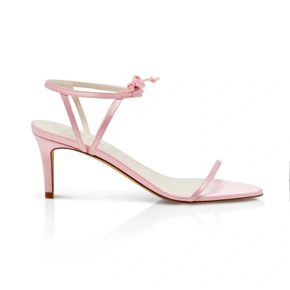 Handcrafted from biologic silk, apple skin and sugarcane molasses, Clover reimagines the classic luxury heeled sandal. Clover is a pink rounded-toed style with an adjustable,...
