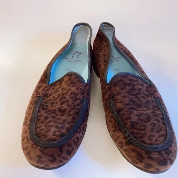 $500 Thierry Rabotin Leopard Suede Loafer Shoes 40.5 EUC Quiet Luxury Italian