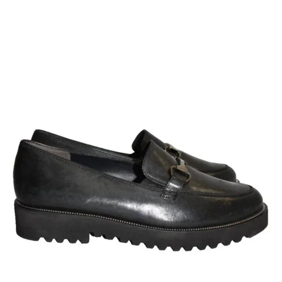 $550 PAUL GREEN Nandi Leather Platform Loafers METAL HORSEBIT BLACK 9.5 (MG9)