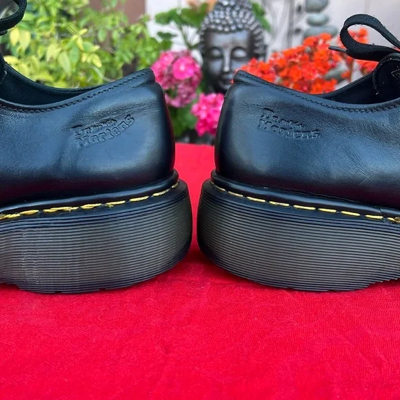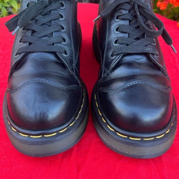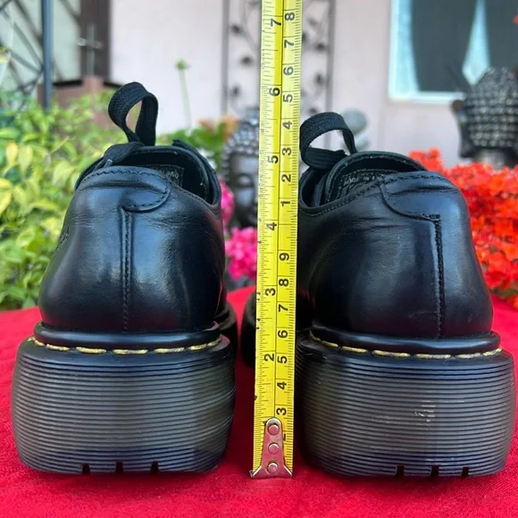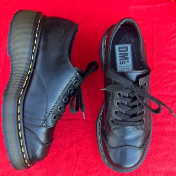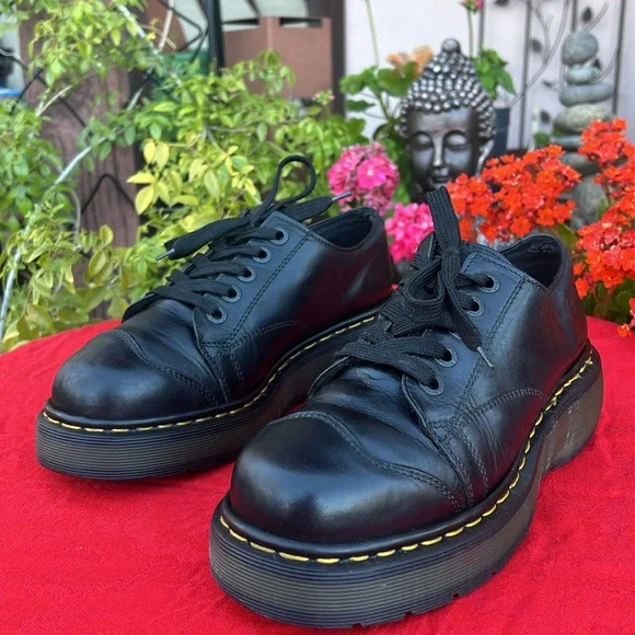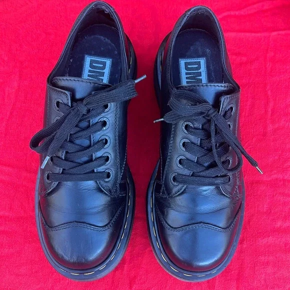 Vintage Dr. Martens Chunky Black Cap Toe Y2K Platform 8651 Oxfords. Made in England. Smooth black leather. 1 1/2 inch platform lift in front with a 2 1/2 inch chunky sole. Some surface scuffs (that a polish would likely cover). Interiors are in great condition! Insoles completely intact and all interior print is legible. Some light fading of insoles. Soles in great condition too with no signs of wear. UK size 5, equivalent to US women’s size 7, EU 38. E112277DM#Y2K #90’s #vintage #chunky #y2k #platform #hippie #festival #england #mie #retro #leather #boho #grunge #unisex #platforms #deadstock #rare #madeinengland #htf #hardtofind #deadstock #docs #dm #dms #60s #70s #80s #90s #vintagevibe #8651 #grunge #academia #throwback #toecap #captoe #squaretoe #1A06 #distressed #embossed #oxfords #stamped #loafers