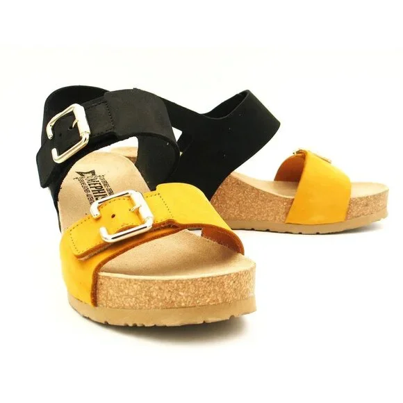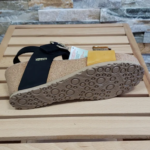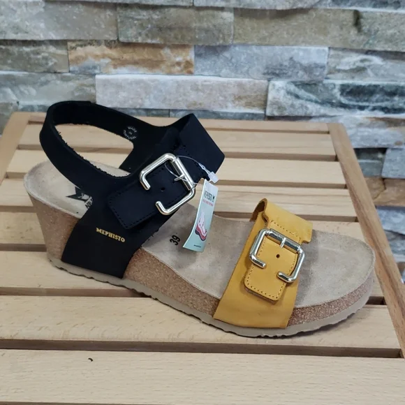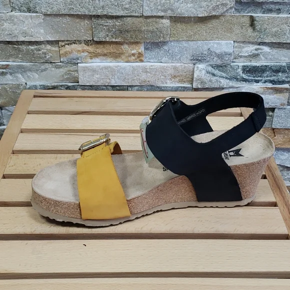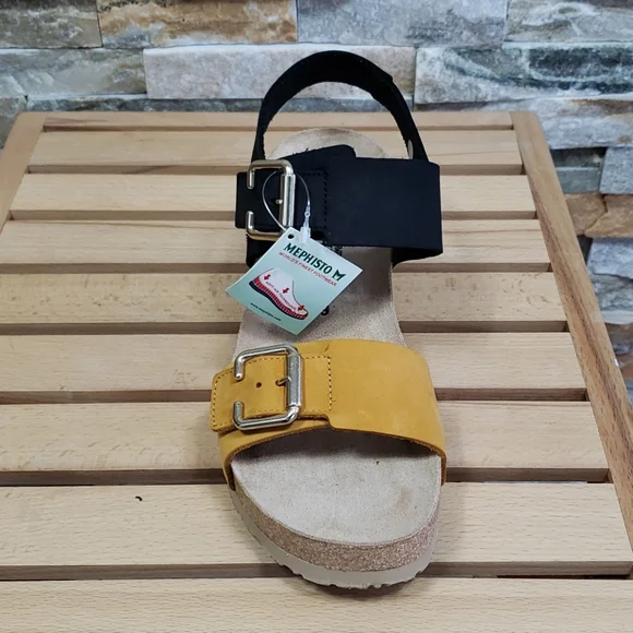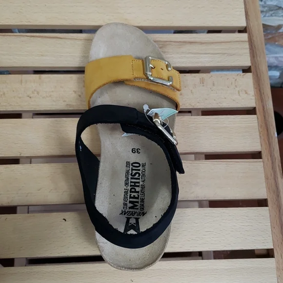 New ⬆️see picturesLeatherRubber solePlatform measures approximately 1Whole sizes only; for 1/2 sizes, order next size up.2 1/2" heel; 1" platform (size 9)Adjustable hook-and-loop straps with decorative bucklesOptimal shock absorption when walkingMade in Portugal