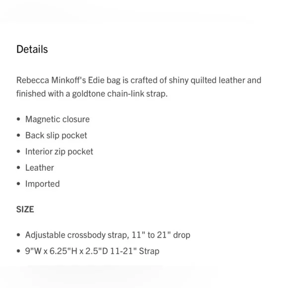 *NWT*Rebecca Minkoff Edie Quilted Leather Crossbody Bag