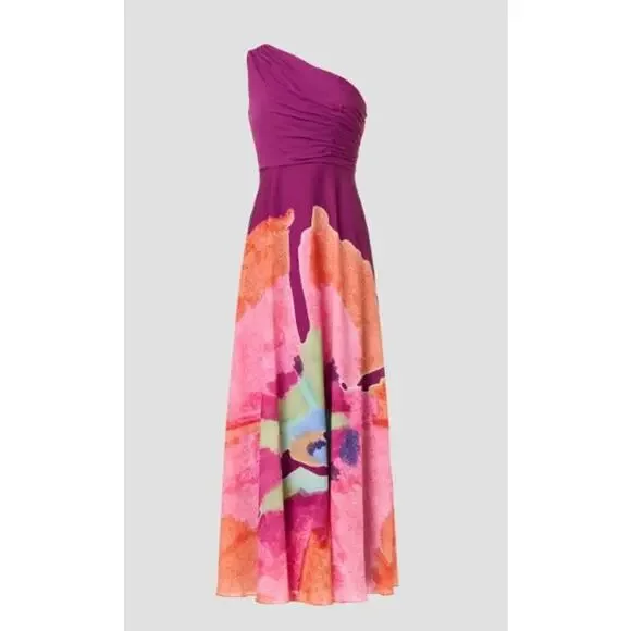 NWT AMUR Atlas One Shoulder Ruched FloralGown Dress Deep Purple Women´s Size 12New With TagsThis AMUR Atlas gown is a brand-new, tag-intact maxi dress in a striking deep...