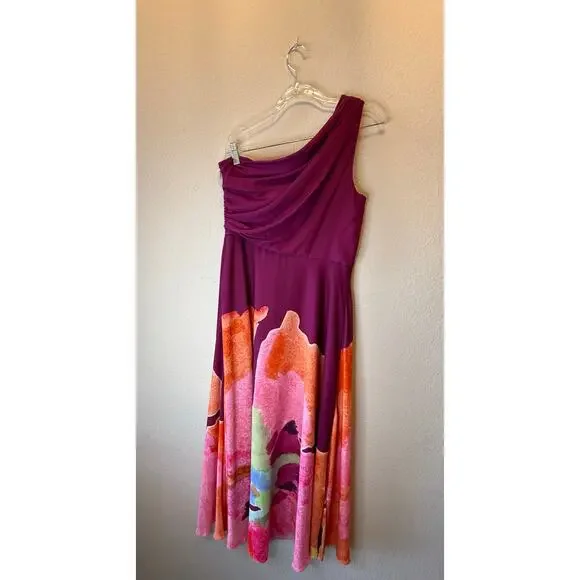 NWT AMUR Atlas One Shoulder Ruched FloralGown Dress Deep Purple Women´s Size 12