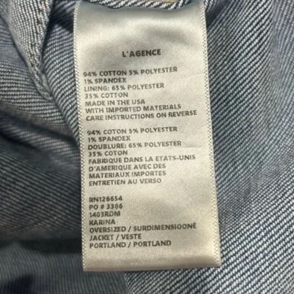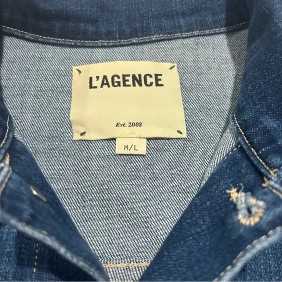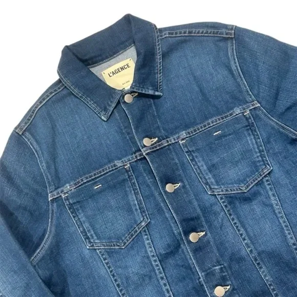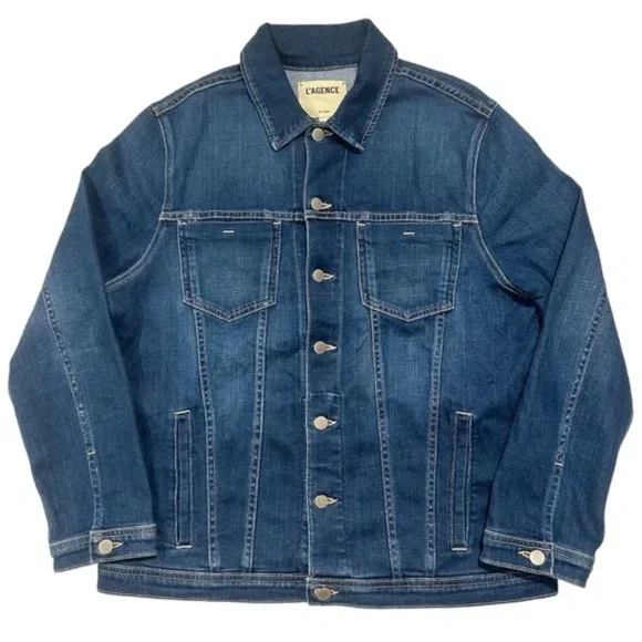 ❤️L´AGENCE Women’s Medium Large Karina Oversized Long Sleeve Denim Jacket.Measurements: Pit to Pit - 22 in Top of Collar to Bottom - 29 in Shoulder (Seam to seam) - 18 inSUPER SOFT! YOU WILL LOVE!