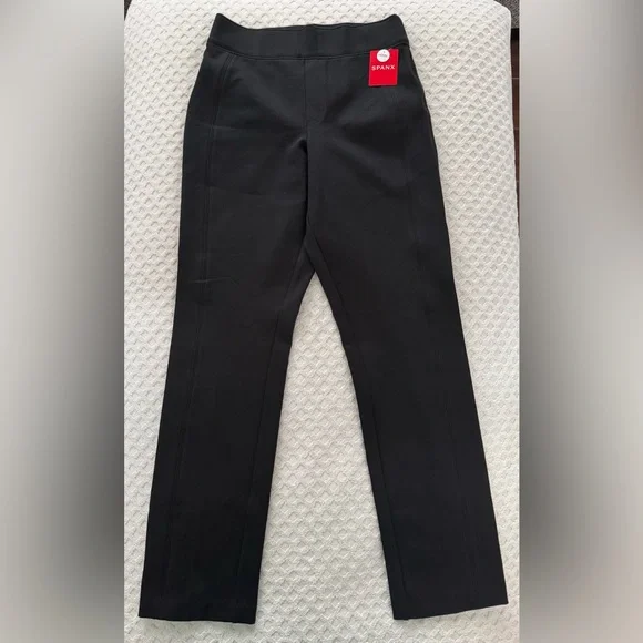New with tagsColor - Classic BlackSize - Petite XSRetail $148Style # 20254QThis smoothing pant comes in our premium ponte fabric with targeted compression built in, powered by SPANX CoreSure Tech™. With comfortable 4-way stretch and a high rise waist, this slim straight pant will have you feeling smooth from tummy to thigh, and oh-so-comfortable throughout the leg. No zippers, no buttons, and no pockets (so no bulk!) at the hips—all for the ultimate smoothing effect.SPANXsupersmooth™ provides light compression for a smoothing effectBuilt-in core-smoothing technologyLeg-lengthening and hip-flatteringStyle No. 20254QBuilt-in SPANX CoreSure™ Tech for smoothing and compressionPremium ponte fabric with 4-way stretch enhances curves and moves with youSlim straight style provides a leg-lengthening lookHip-flatteringPull-on (no zippers or buttons in sight)Pocket-free = bulk-freeBody: 68% Ecovero™ Viscose, 28% Nylon, 4% Elastane. Lining: 80% Polyester, 20% Elastane.