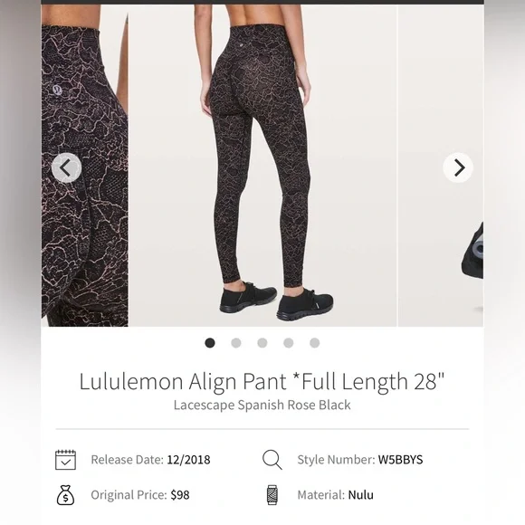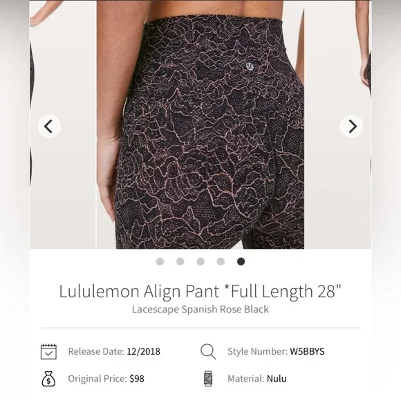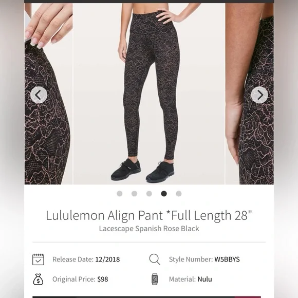 Lululemon Align Pant Full Length 28"Lacescape Spanish Rose BlackSize 10Style W5BBYSOverall good used condition, normal wash wear Very minor pilling on the lining