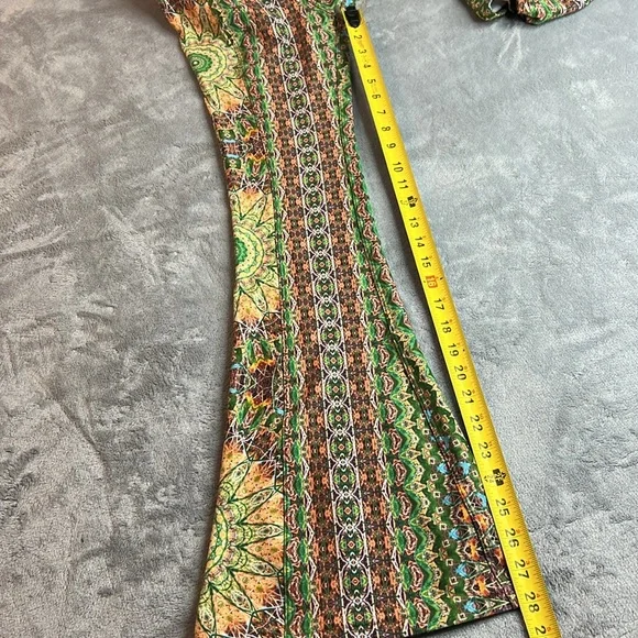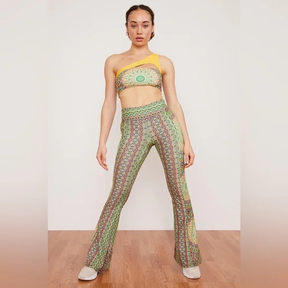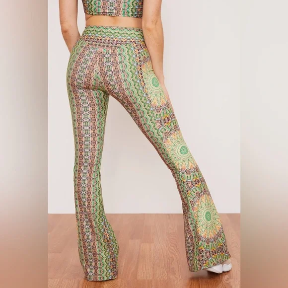 "For the globetrotters, the yogis, the dreamers, and doers, this is the all-encompassing golden key to your wardrobe. Our flare pant is the perfect bell bottom for roller skating as well as all of your other journeys. Made using post-consumer recycled plastic — 84% RPET and 16% spandex. For the nature-lovers at heart. This earth-toned print is laced with vibrant greens to instantly transport you to the magic of the sacred outdoors — even if you’re powering through asanas inside."Ultra SoftBreathableQuick-DryingOdor ResistantFour-Way StretchWaist 11”Rise 8.5”Inseam 28”Leg opening 11”Measurements are approximate and taken while item is lying flat and are for reference only. They do not guarantee fit.W1CH7T
