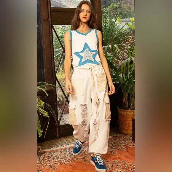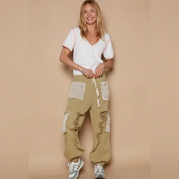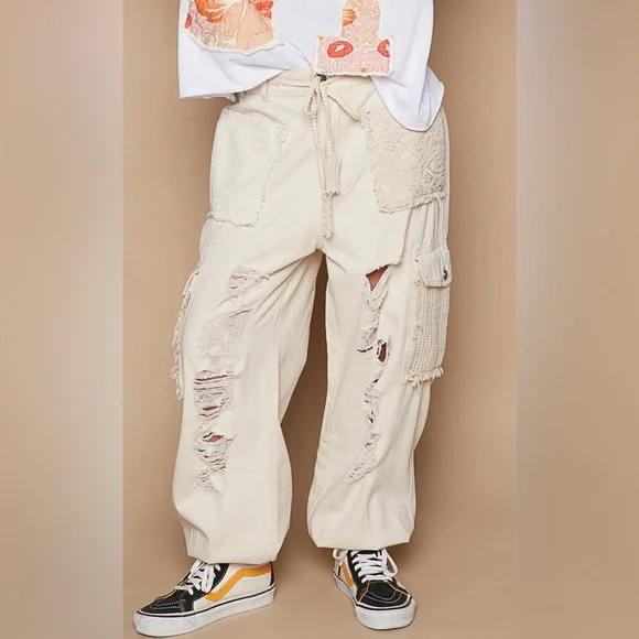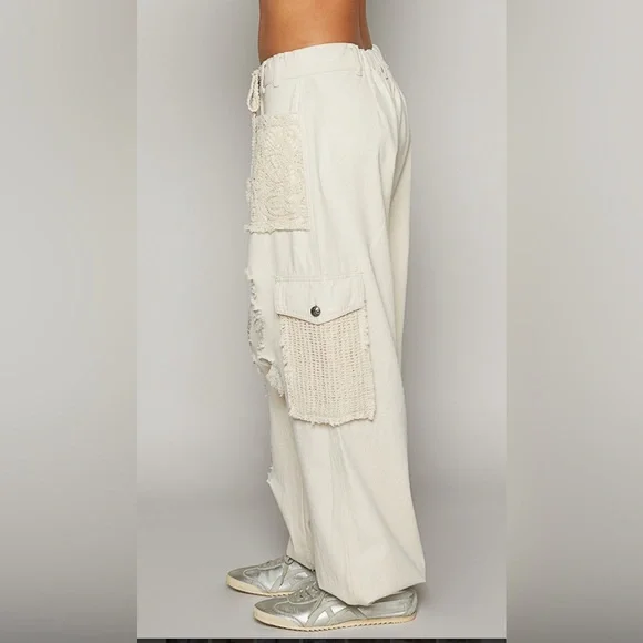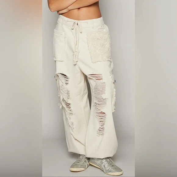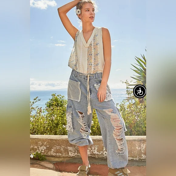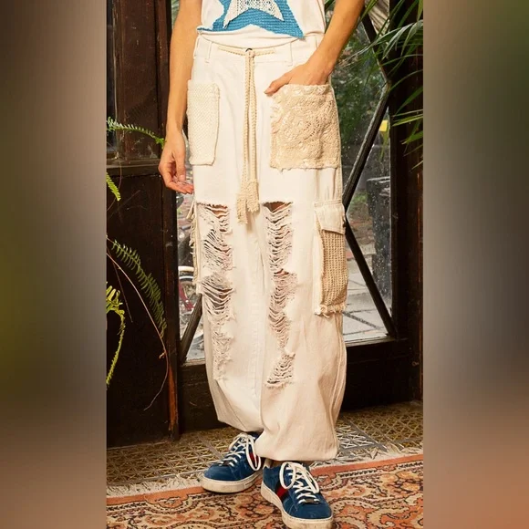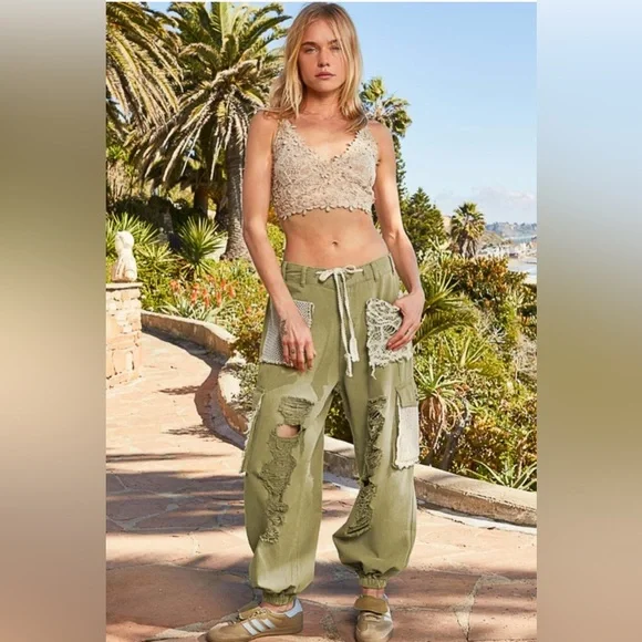 Crochet Pocket Denim JoggersMultiple Restocked ! Best Selling PantsThe crochet pocket patchwork detail is so boho and on trend! These denim joggers have an elastic waist and button/zipper front.The joggers are running just slightly oversized. 100% cottonLoose FitButton & Zip ClosureCrochet Lace Trim Loop in WaistbandElastic Waistband in Back2 Oversized Front Pockets2 Crochet Lace Side PocketsDistressed DetailsBoutique ItemBrand New - Restocked! Also available in olive green and cream color, please see other listings.SmallWaist 16.5 -19” Full Stretch Rise Front 10” Back 13.5”Side Length 36” Inseam 29”MediumWaist 17-19 Full Stretch Rise Front 10” Back 13.5”Side Length 36” Inseam 29”LargeWaist 17-19 Full Stretch Rise Front 10” Back 13.5”Side Length 36” Inseam 29”Bundle, save and pay only one shipping!NoAccount?Use this link to sign up and get $10 off on your first purchase.https://posh.mk/UqqcRiomwKbHappy Poshing!