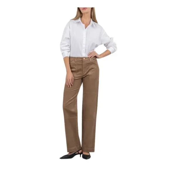 Kut from the Kloth Pants Women 6 Sienna Wide Leg Utility Mid Rise Khaki Tan