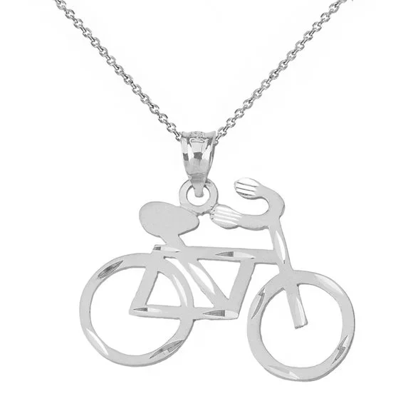 14k Solid Gold Sparkle Cut Bicycle Pendant - Yellow, Rose, or White