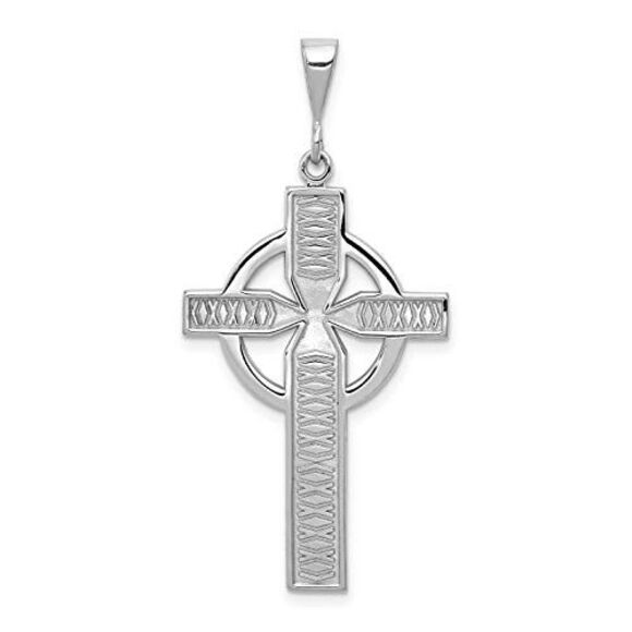 This beautifully designed item offers the perfect blend of style and substance. Its elegant design is ideal for enhancing any outfit, while its durable construction ensures lasting wear, making it an essential addition to your wardrobe.Specifications:Material: Primary - Purity:14KFinish:PolishedLength of Item:44 mmPlating:RhodiumCharm/Element Length:35 mmCharm/Element Width:21 mmManufacturing Process:CastedMaterial: Primary:GoldWidth of Item:21 mmProduct Type:JewelryJewelry Type:Pendants & CharmsSold By Unit:EachPendant/Charm Type:ThemedTexture:TexturedProfile Type:Textured BackMaterial: Primary - Color:WhiteBail Length:9 mmModel Number: K-CH129-L