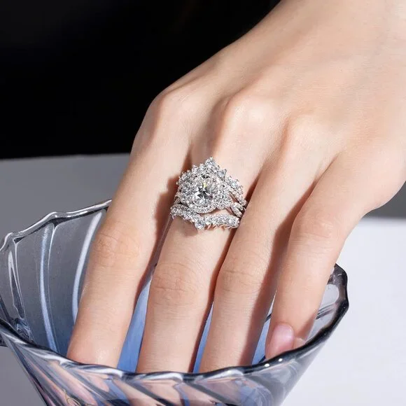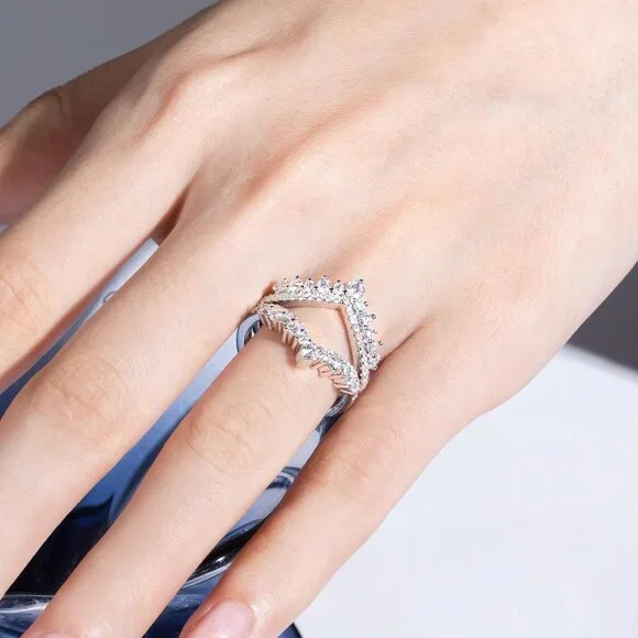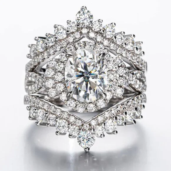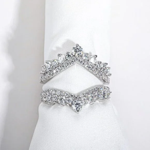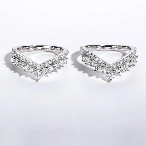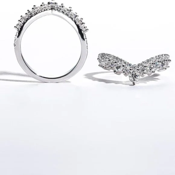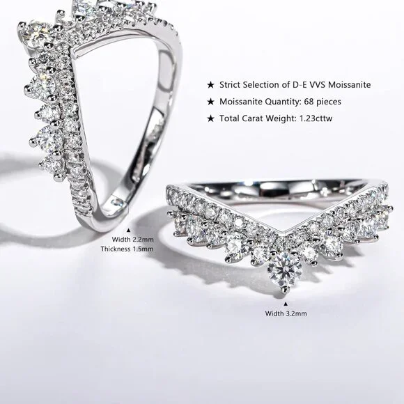 Package Dimensions: 2.44 X 2.05 X 1.38 Inches; 0.28 OuncesDepartment: WomensRing Size: 9Material: D Color Moissanite, Lab Created Moissanite, Platinum Plated 925 Sterling SilverMetal Type: Platinum Plated SilverMetal Weight: 6 GGem Type: MoissaniteItem Type: Wedding BandsOFFERING: Each our Moissanite test Positive by Diamond Testers. A strict selection of D-E color, represents the best Fire and Glossiness. Only VVS clarity are qualified to be scale, which perfection is visible to the naked or trained eye when observing. Cut by highly skilled gemstones cutters gives each Moissanite its Unique Sparkle by allowing the Maximum Amount of light return through the top of the stoneINGENIOUS DESIGN: Shimmering 68 pieces of Moissanites 1.23 cttw glisten along the V-shape shank, creates a dazzling crown. The Captivating Moissanite Wedding Ring Enhancers includes 2 pieces, from its refined and creative design, avoid too tight or have too much space in between when stacking, further enhances your loved main rings more glamorous, making you focus of the feast, meeting, dating, prom, party, travelETERNAL TRENDY: These timeless classical Moissanite bands absolutely are an irresistible collection for women. Its versatile characteristic perfect for all dress up, let you show your uniqueness in any occasions, wear them separately with casual or stack them with vintage, traditional or modern style engagement ring to create unlimited possibilities. Visit our store for a full selection