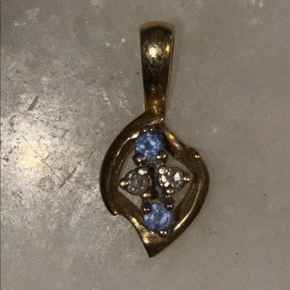 Tanzanite & Diamond Pendant- 14k yellow gold- 2 round tanzanites- 2 round diamonds