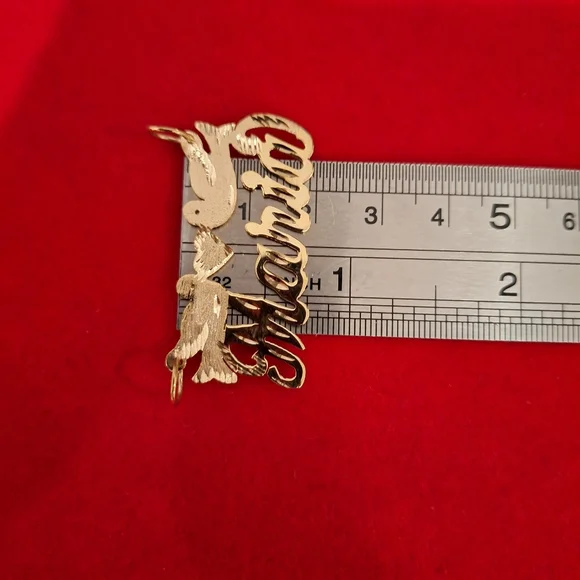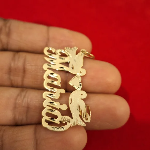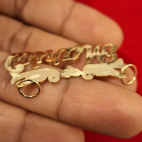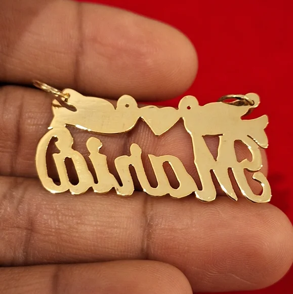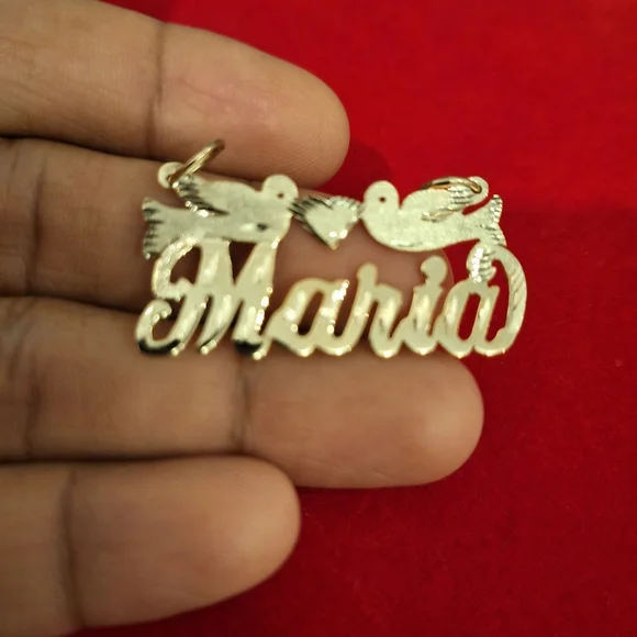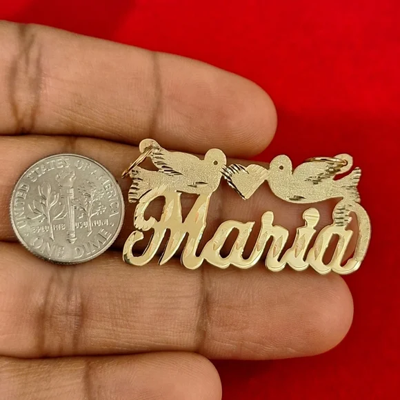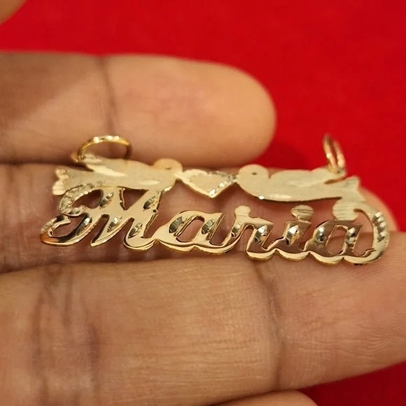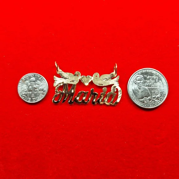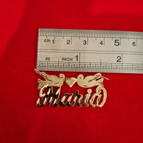 10kt Gold Maria Nameplate Pendant Weight 3.19gmsPlease check the images for height width Please compare and assume the size with quater & Dime.100% Authentic 10kt gold pendant.