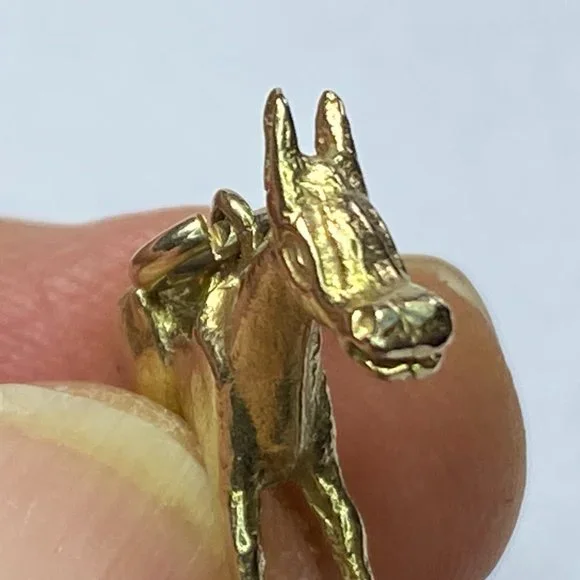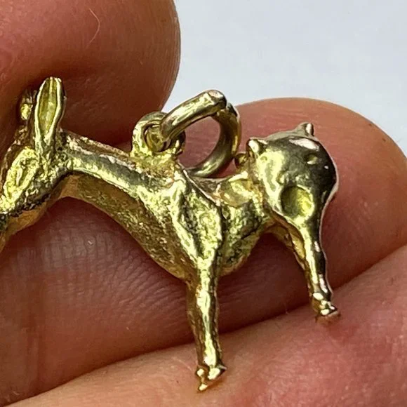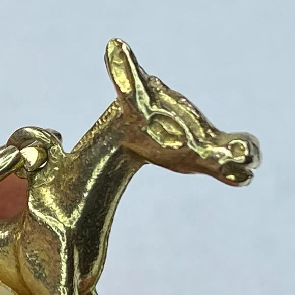 A cool and adorable Donkey charm pendant, crafted in 10K yellow gold. The charm has amazing detail, 3 dimensional. It measures 20.2 x 18.5 x 4.6mm, weight 3.3gm, no hallmark and...