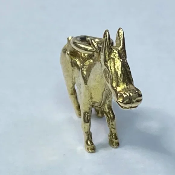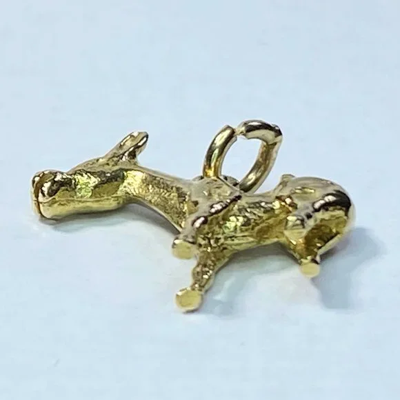 A cool and adorable Donkey charm pendant, crafted in 10K yellow gold. The charm has amazing detail, 3 dimensional. It measures 20.2 x 18.5 x 4.6mm, weight 3.3gm, no hallmark and tested for 10K