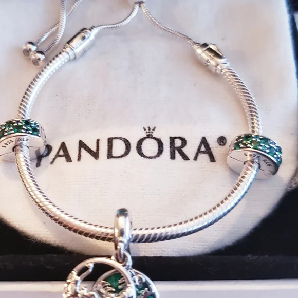 1 Authentic Pandora Moments Snake Chain Slider Adjustable Bracelet, Sterling Silver, Cz1 Authentic Pandora Disney, Simba, Timon & Pumbaa Dangle Charm, Sterling Silver, Enamel, Green Crystal2 Authentic Pandora Mosiac Shinning Elegance Clip, Multi-Colored Crystals & Teal Cz Clip⭐ALL REASONABLE OFFERS ACCEPTED✅️