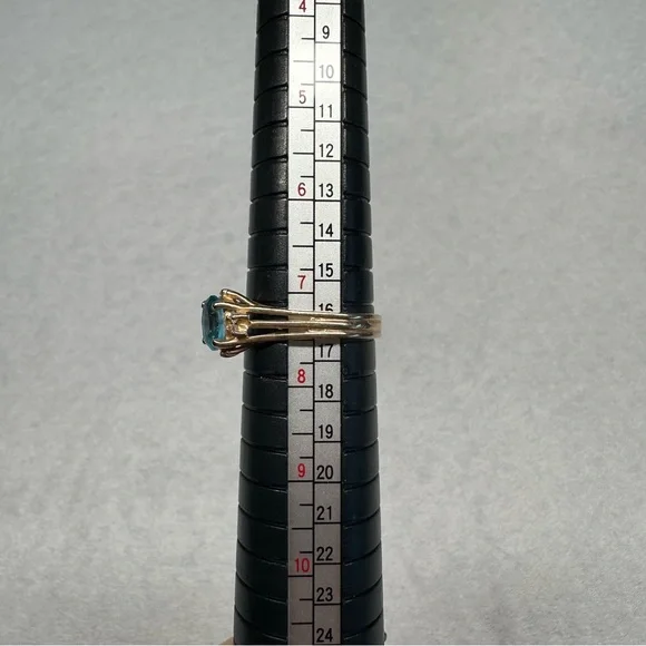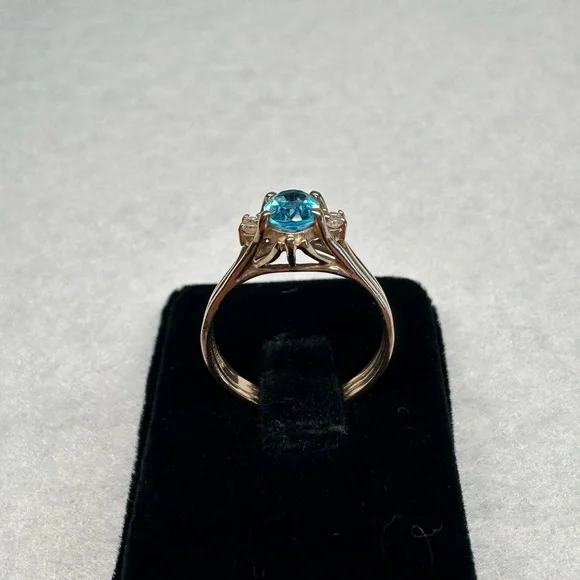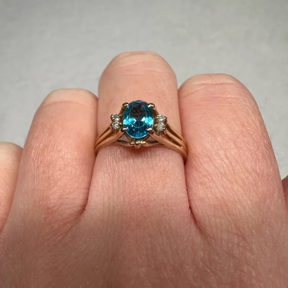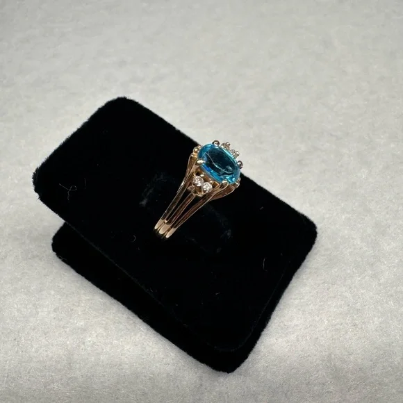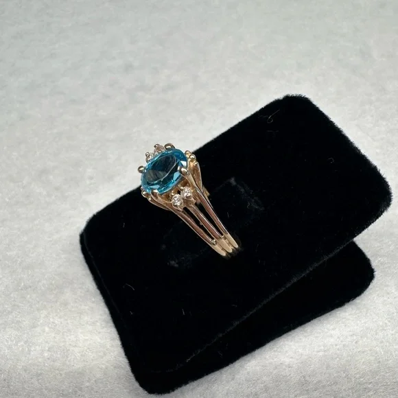 Item #699114k yellow gold blue topaz & diamonds ring Size 7 All jewelry is tested for purity.Comes in a gift box and will be professionally cleaned before shipped (: