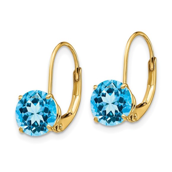 14k 7mm Blue Topaz Leverback Earrings