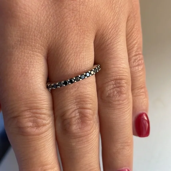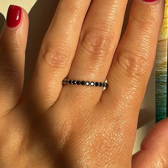 Gorgeous Black Diamond Eternity band Size 7.5Stamped 10K with Markers MarkThis ring makes the perfect stacker band. Can also be worn by itself!