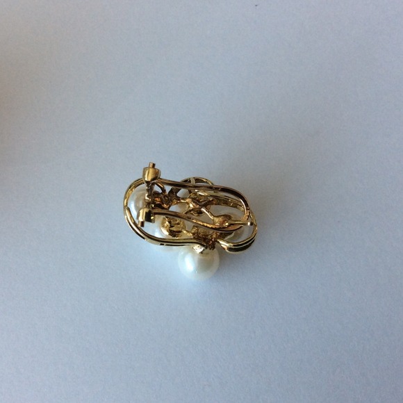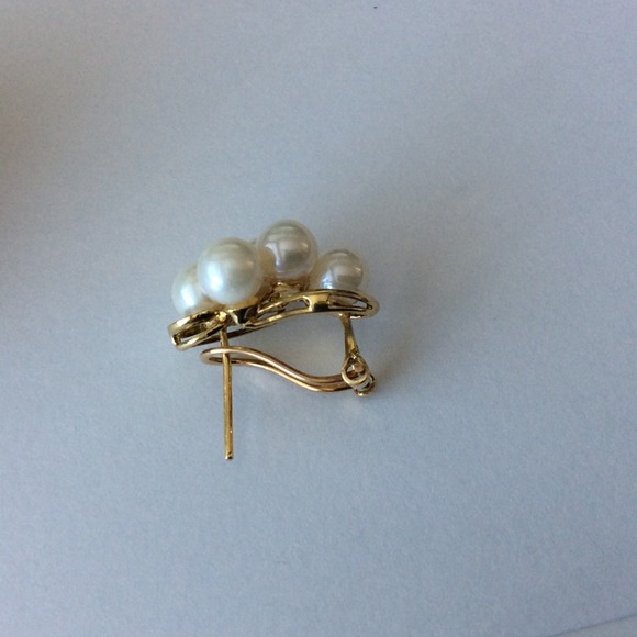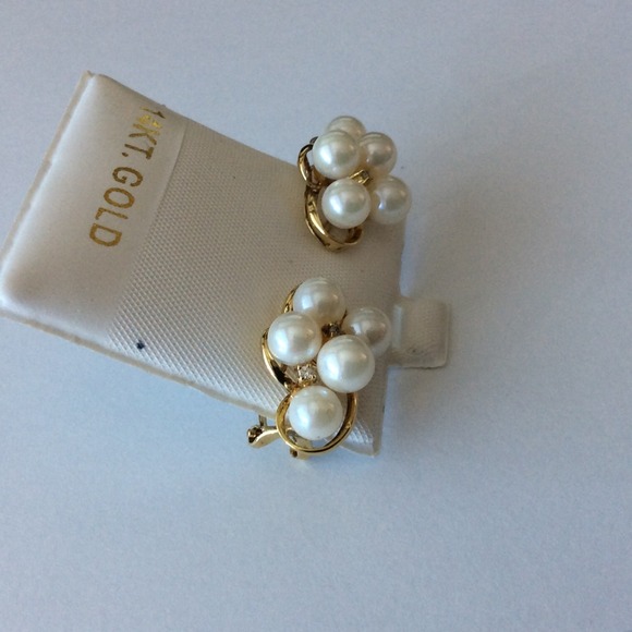 14K 6mm akoya pearls cluster lever back diamonds
