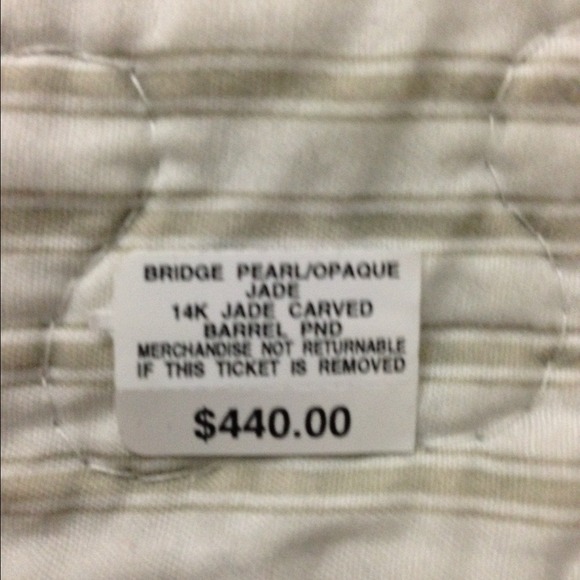 Bridge pearl/opaque jade. 14k jade carved barrel pendant. New with tags