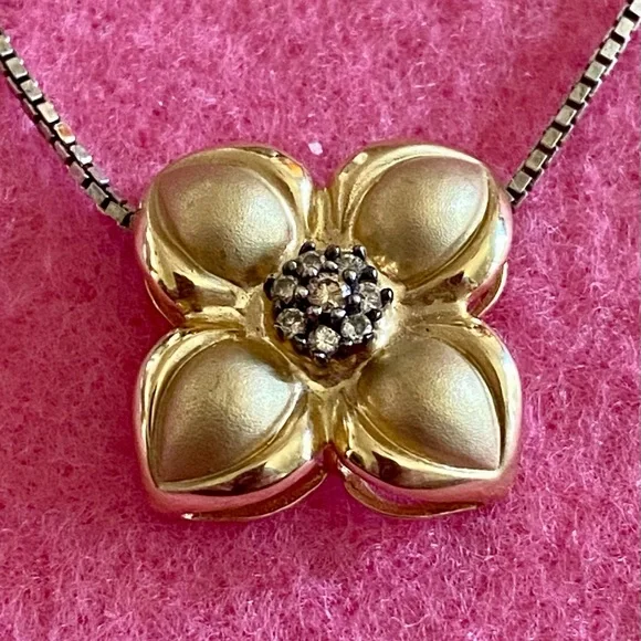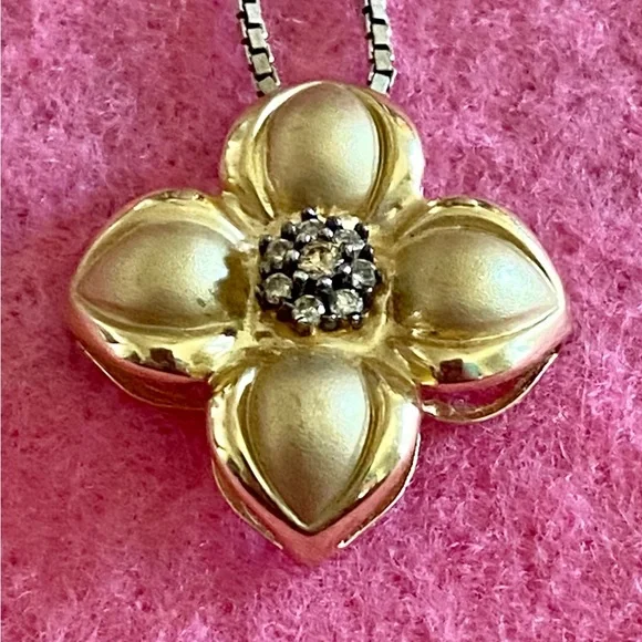 Gold flower with diamond cluster. 14k gold. Never worn.