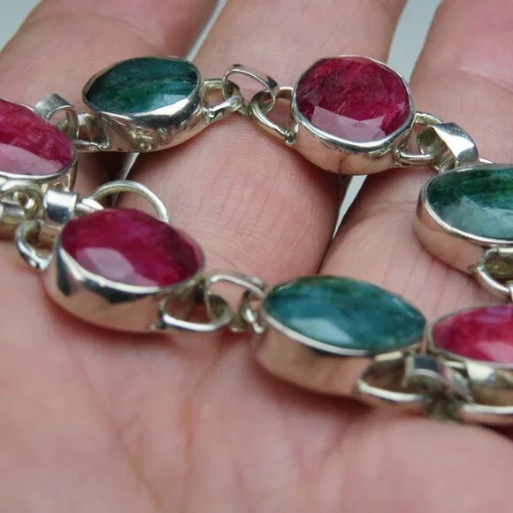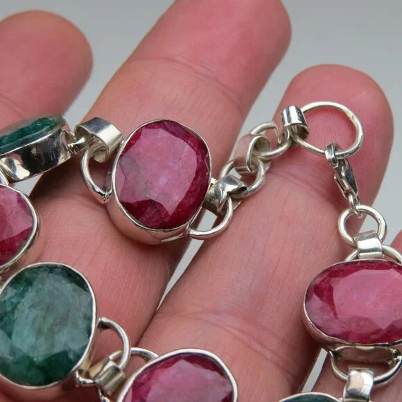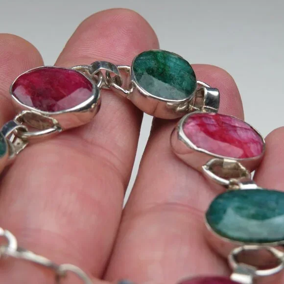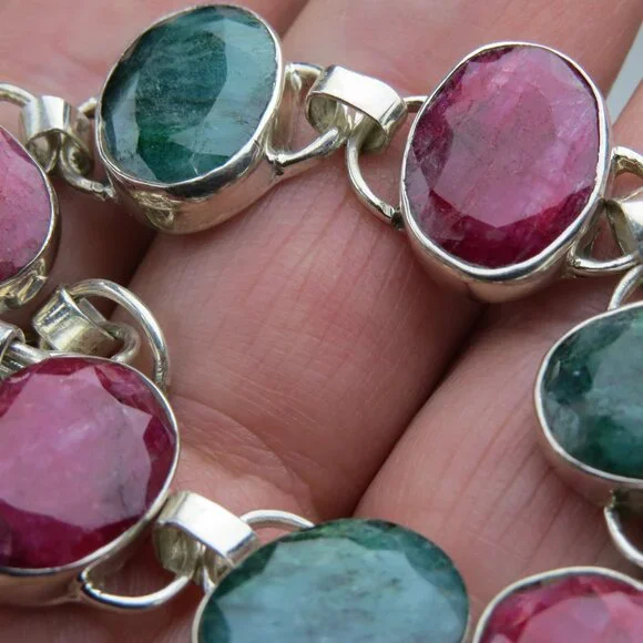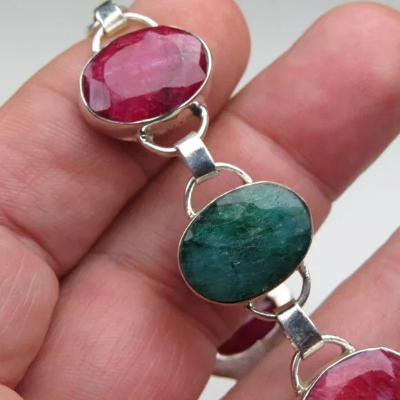 Sterling SilverMassive Emerald & Ruby Gemstone Bracelet16ct= Emerald16 ct=Ruby7" & 8"SKU-0006