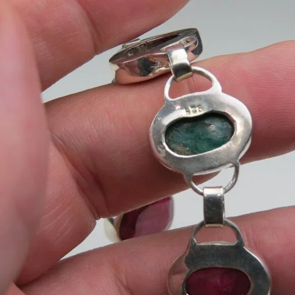 $2300 32CT. Sterling SilverMassive Emerald & Ruby Gemstone Bracelet