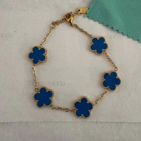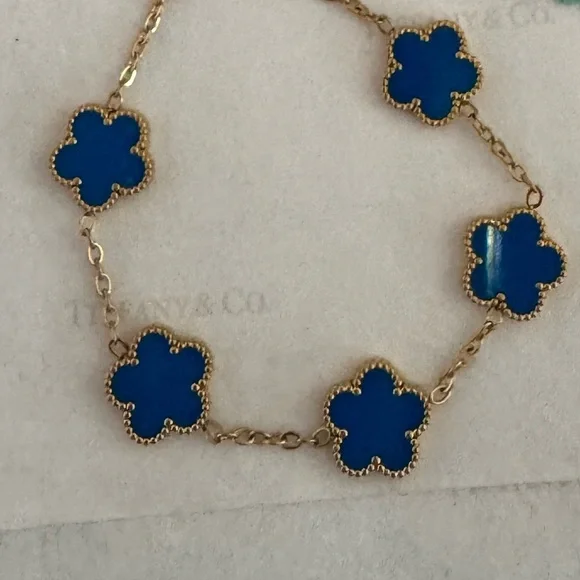 New! Vintage Clover Bloom Motifs Bracelet5 enchanting Blue Cloverleaf18k yellow gold finish High-Quality JewelleryCompared to Neiman Marcus Retail Price: $1,500Inspired by...