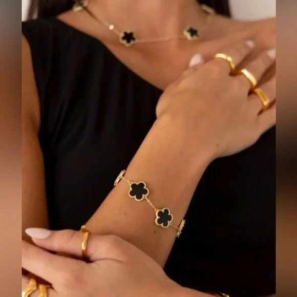 New! Vintage Clover Bloom Motifs Bracelet5 enchanting Blue Cloverleaf18k yellow gold finish High-Quality JewelleryCompared to Neiman Marcus Retail Price: $1,500Inspired by Richmond Jewellery