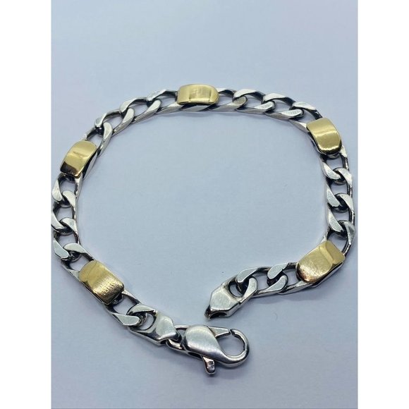 Tiffany & Co. 18k Gold Sterling Silver 5mm Wide Curb Link Chain Bracelet 7 3/8"