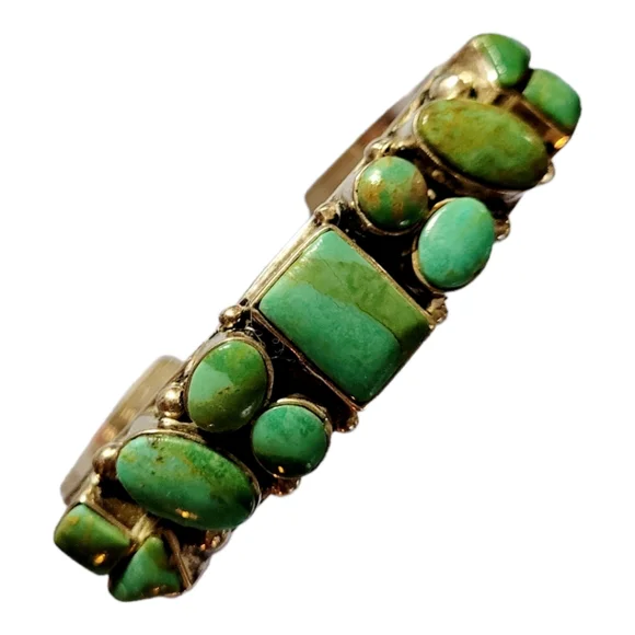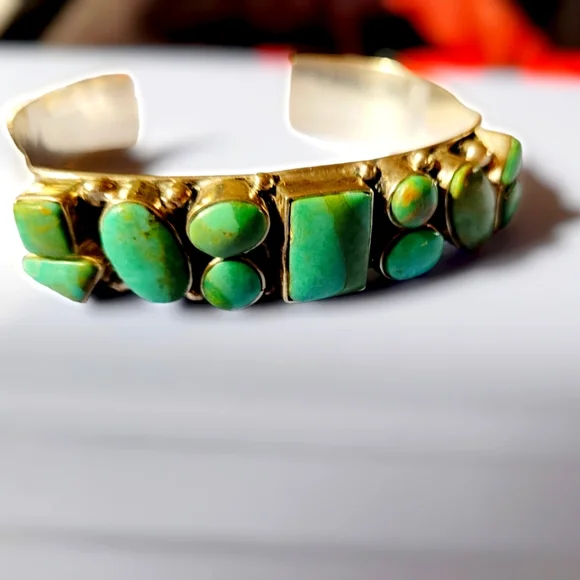 This listing is for a Beautiful Vintage Sterling Silver & Multi-Stone Turquoise BraceletThere are eleven (11) stones, each one has been hand-polished...bringing their natural beauty out to the surface.The Turquoise is blue-green, with veins of copper flecks and browns.Measures 5.5" with a 1" gap.Weight 30.88 grams.Hallmarked w/ a Lizard SymbolIn Wonderful ConditionAll reasonable offers are welcome. From a non-smoking home. Happy to create bundles.I have many different patterns, Craft items, clothes, purses, shoes, jewelry, toys, collectibles, movies, video games and much, much more!!Feel free to message me with any questions you might have regarding this item. Thank you for visiting my page.Be sure to visit my online store for more unique finds and great bargains.