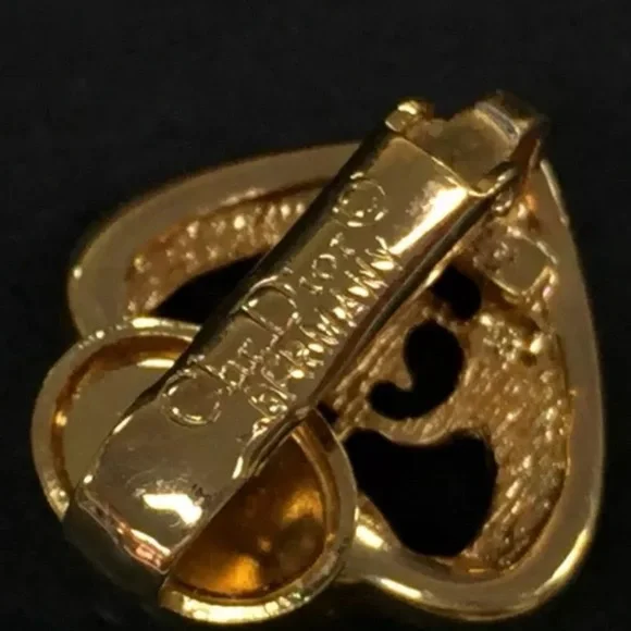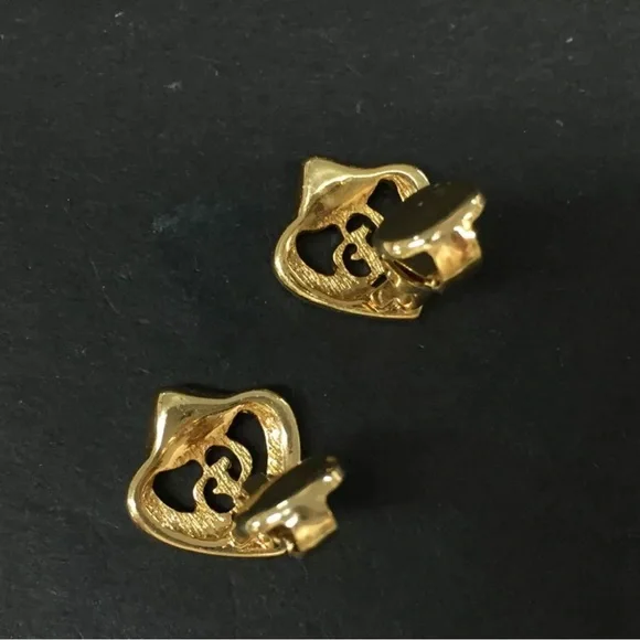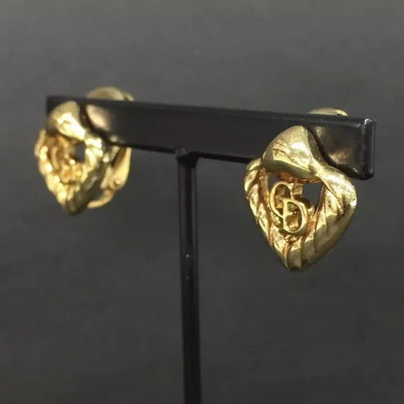 Christian Dior gold tone logo heart shaped clip-on earrings. Measure approximately 0.5 X 0.5”. Stamped on clips. In excellent pre-owned condition.Please carefully review photos, read the description & ask questions PRIOR TO buying/bidding/offering. All sales are binding & final. No cancellations.