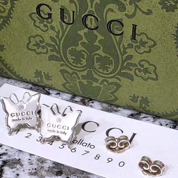 Authentic , Silver Trademark Logo Butterfly Motif EarringsMade in ItalyNEW Features: Shiny mirror finish sterling silver stamped .925 with authenticity engraving on backs. Original engraved sterling silver backings.Beautiful silver butterlies measure .5"On the front of the butterflies there is the signature trademark logo engraved. Includes original dust bag & boxClassic trademark logo imprinted on front of lovely butterflies. Fantastic luxury earrings with no tarnish or damage. New in box, never used. Retired style no longer sold in stores.
