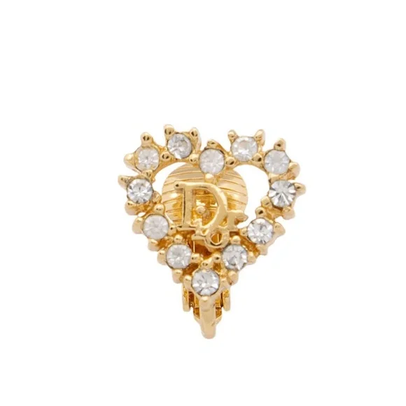 Christian Dior Logo Heart Rhinestone Gold Tone Clip Earrings AuthenticDior Heart Clip On Earrings...Size(Inch)H 0.51 W 0.51Authentic Dior Heart Clip On...
