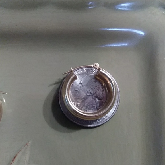 Wide 5/16" size of hoop 3/4" size Hollow with pretty ridge design. 2gr. Gold. Please review all photos next to the quarter size. NOTE: if this is bundled and ignored, I gladly...